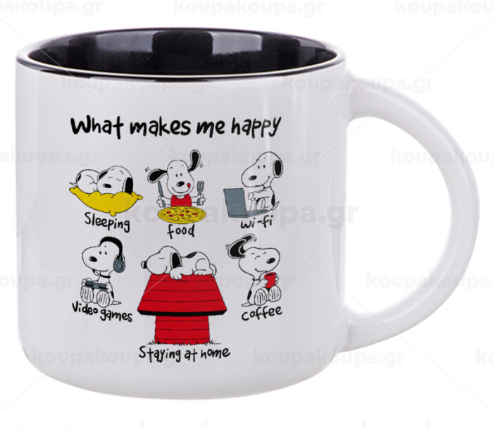 Snoopy what makes my happy, Κούπα κεραμική 400ml Λευκή/Μαύρη