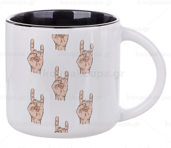 Rock hands, Κούπα κεραμική 400ml Λευκή/Μαύρη