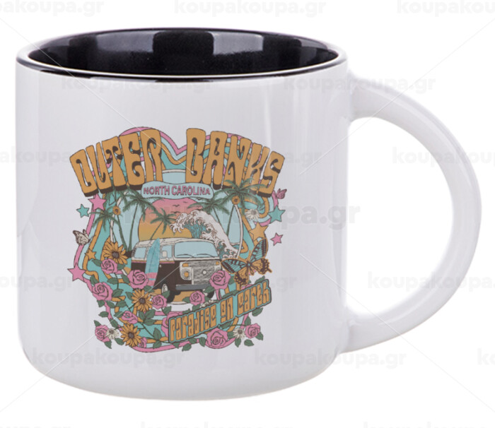 Outerbanks paradise on earth, Κούπα κεραμική 400ml Λευκή/Μαύρη