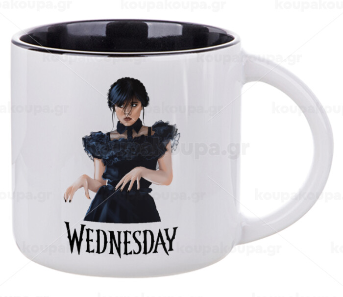 Wednesday Adams, dance with hands, Κούπα κεραμική 400ml Λευκή/Μαύρη