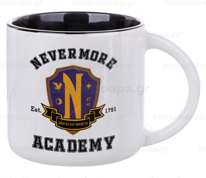 Wednesday Nevermore Academy University, Κούπα κεραμική 400ml Λευκή/Μαύρη