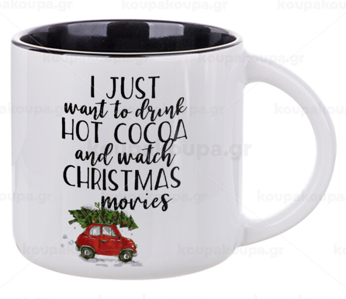 I just want to drink hot cocoa and watch christmas movies mini cooper, Κούπα κεραμική 400ml Λευκή/Μαύρη