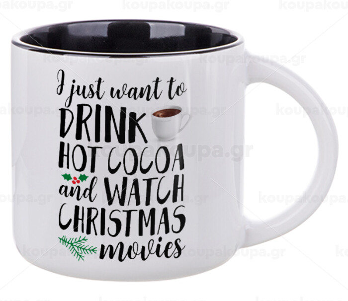 I just want to drink hot cocoa and watch christmas movies, Κούπα κεραμική 400ml Λευκή/Μαύρη