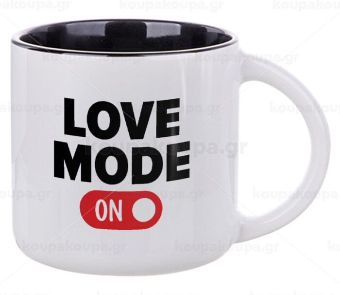 LOVE MODE ON, Κούπα κεραμική 400ml Λευκή/Μαύρη