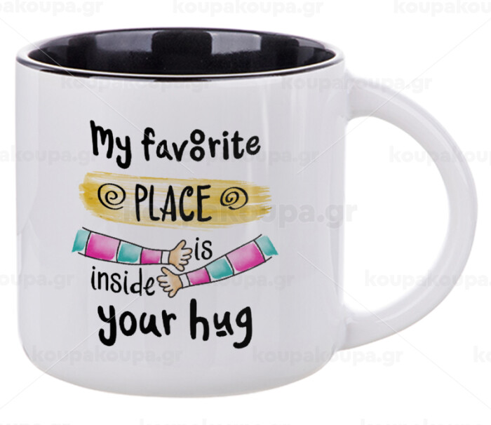 My favorite place is inside your HUG, Κούπα κεραμική 400ml Λευκή/Μαύρη