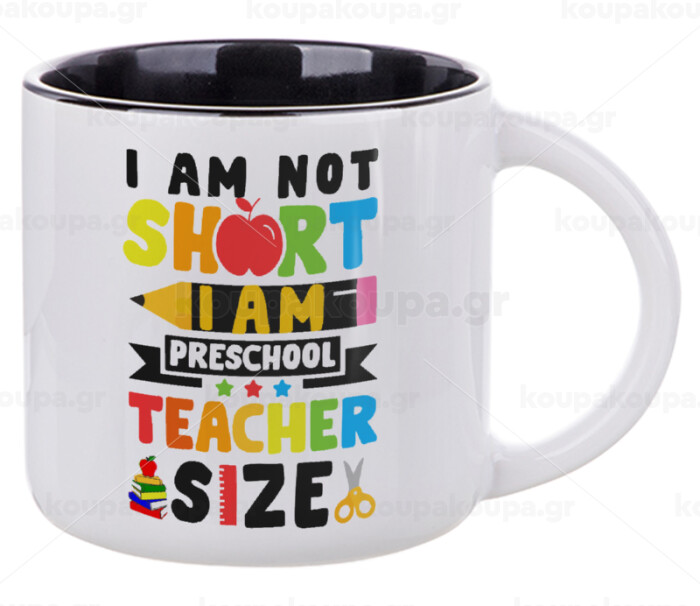 I Am Not Short I Am Preschool Teacher Size, Κούπα κεραμική 400ml Λευκή/Μαύρη