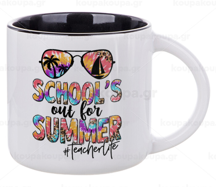 School's Out For Summer Teacher Life, Κούπα κεραμική 400ml Λευκή/Μαύρη