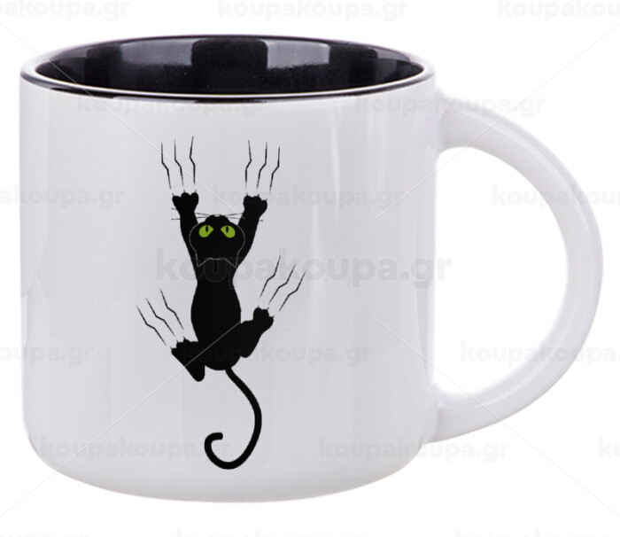 cat grabbing, Κούπα κεραμική 400ml Λευκή/Μαύρη