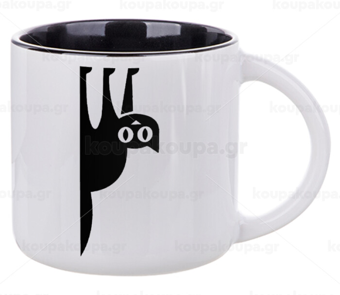 Cat upside down, Κούπα κεραμική 400ml Λευκή/Μαύρη