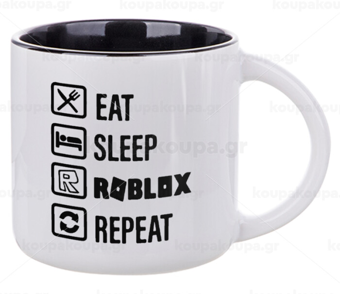 Eat, Sleep, Roblox, Repeat, Κούπα κεραμική 400ml Λευκή/Μαύρη