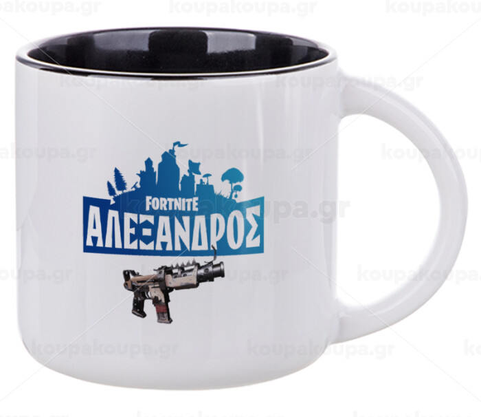 Fortnite with gun με το όνομα σου, Κούπα κεραμική 400ml Λευκή/Μαύρη