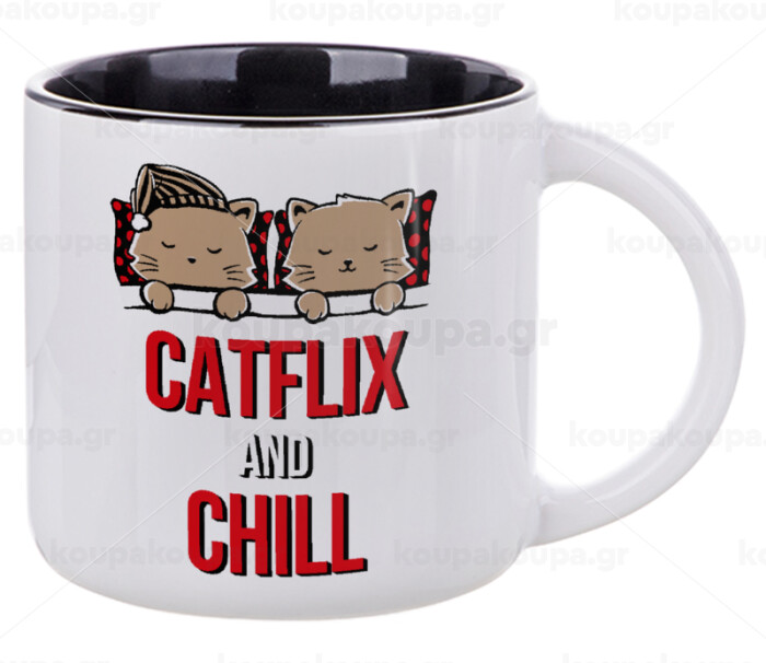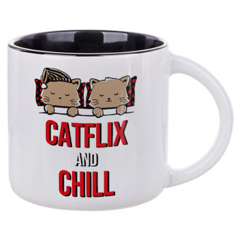 Catflix and Chill, Κούπα κεραμική 400ml Λευκή/Μαύρη