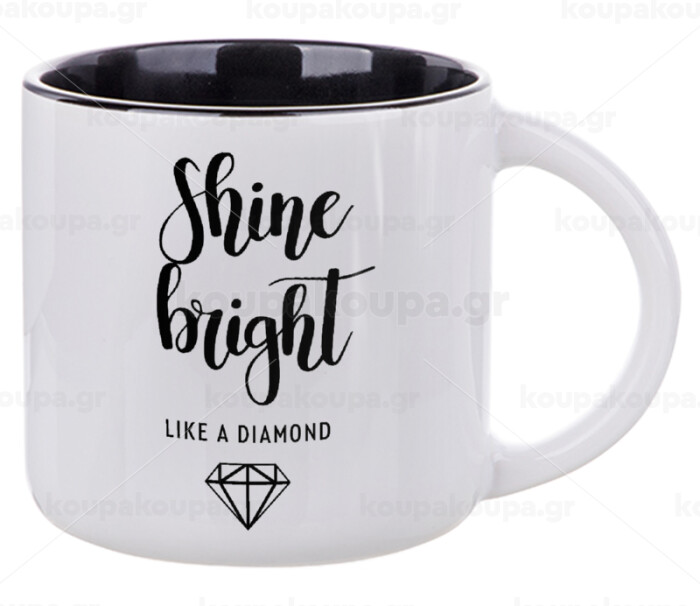 Bright, Shine like a Diamond, Κούπα κεραμική 400ml Λευκή/Μαύρη