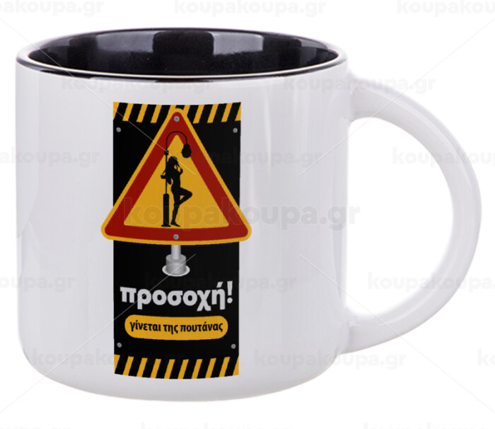 Προσοχή Γίνεται της πουτ.νας, Κούπα κεραμική 400ml Λευκή/Μαύρη