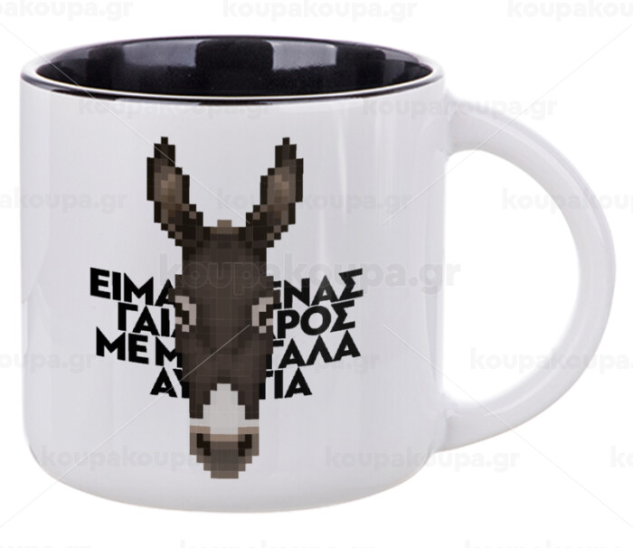 Είμαι ένας γάιδαρος με μεγάλα αυτιά., Κούπα κεραμική 400ml Λευκή/Μαύρη