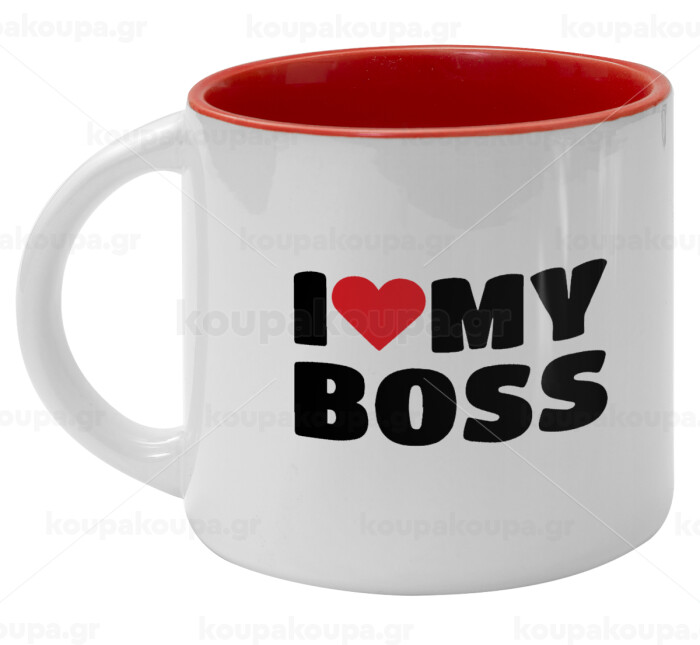 I LOVE MY BOSS, Κούπα κεραμική 400ml Λευκή/Κόκκινη