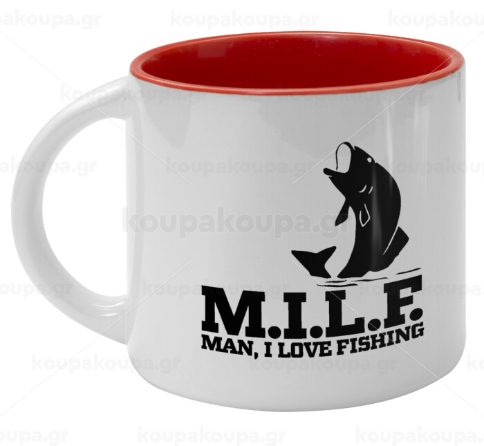 M.I.L.F. Mam i love fishing, Κούπα κεραμική 400ml Λευκή/Κόκκινη