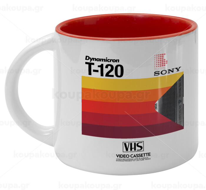 VHS sony dynamicron T-120, Κούπα κεραμική 400ml Λευκή/Κόκκινη