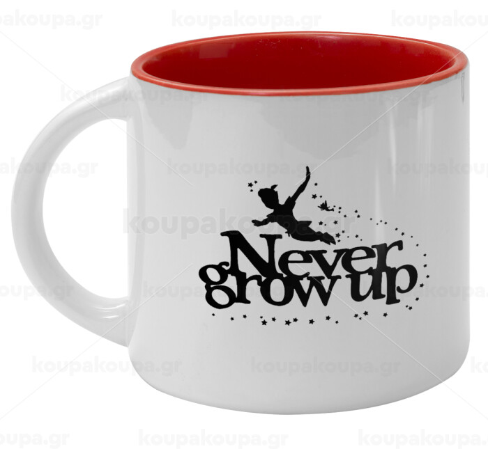 Peter pan, Never Grow UP, Κούπα κεραμική 400ml Λευκή/Κόκκινη