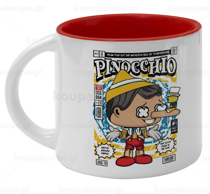 Pinocchio, Κούπα κεραμική 400ml Λευκή/Κόκκινη