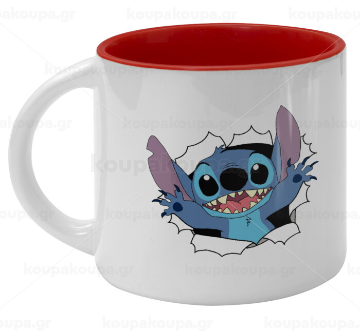 Stitch hello!!!, Κούπα κεραμική 400ml Λευκή/Κόκκινη