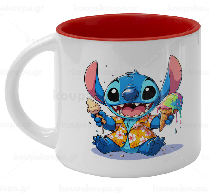 Stitch Ice cream, Κούπα κεραμική 400ml Λευκή/Κόκκινη