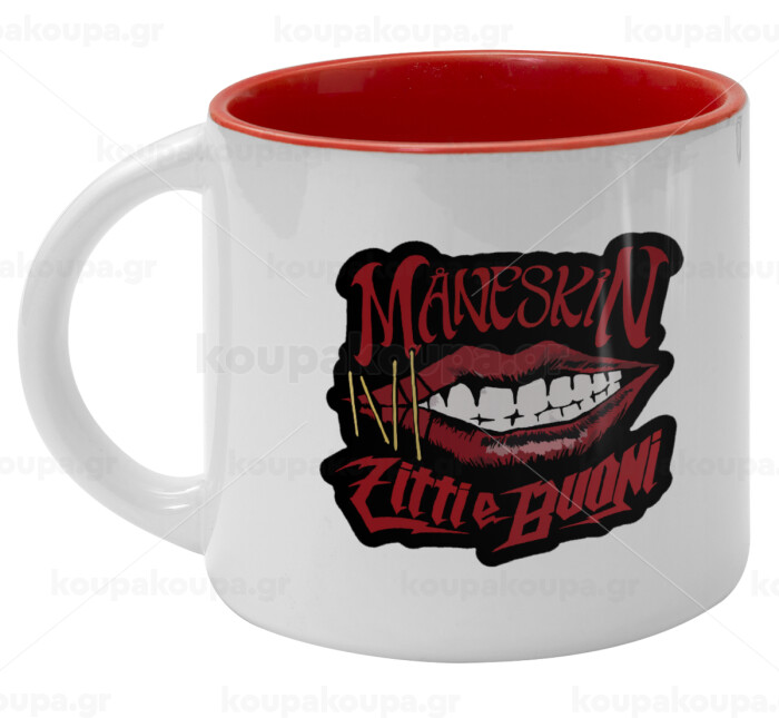 Maneskin lips, Κούπα κεραμική 400ml Λευκή/Κόκκινη