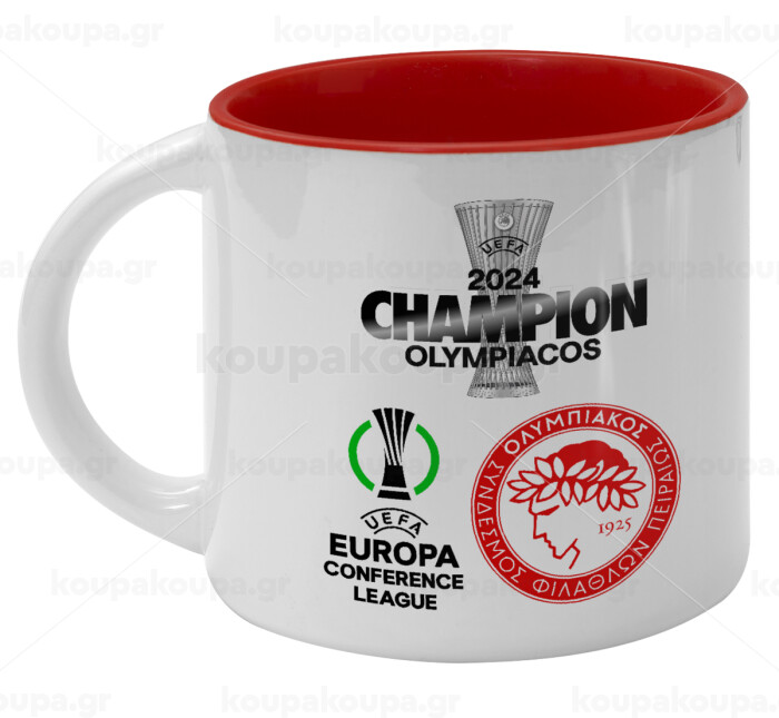 Olympiacos UEFA Europa Conference League Champion 2024, Κούπα κεραμική 400ml Λευκή/Κόκκινη