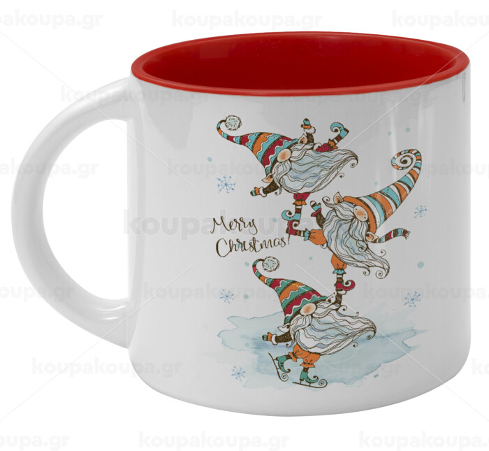 Christmas nordic gnomes, Κούπα κεραμική 400ml Λευκή/Κόκκινη