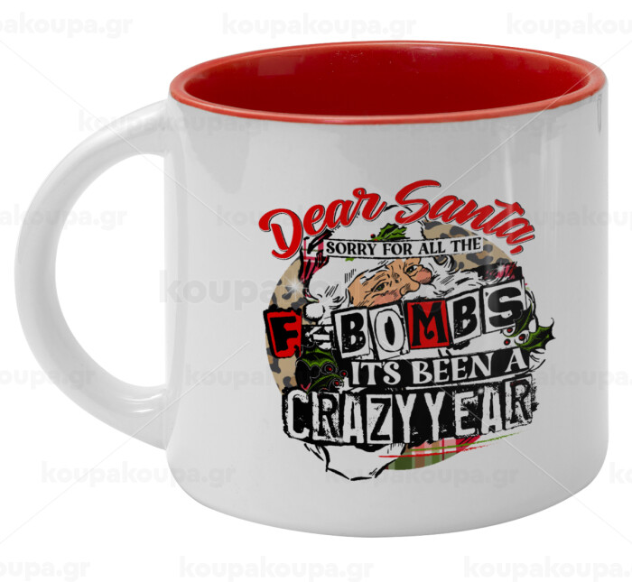 Dear Santa, sorry for all the F-bombs, Κούπα κεραμική 400ml Λευκή/Κόκκινη