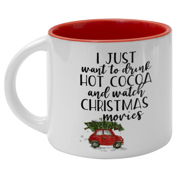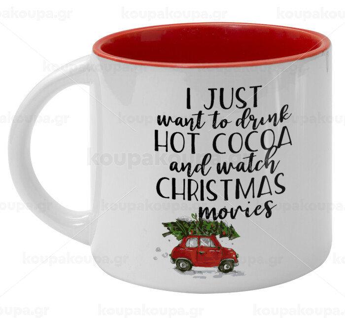 I just want to drink hot cocoa and watch christmas movies mini cooper, Κούπα κεραμική 400ml Λευκή/Κόκκινη