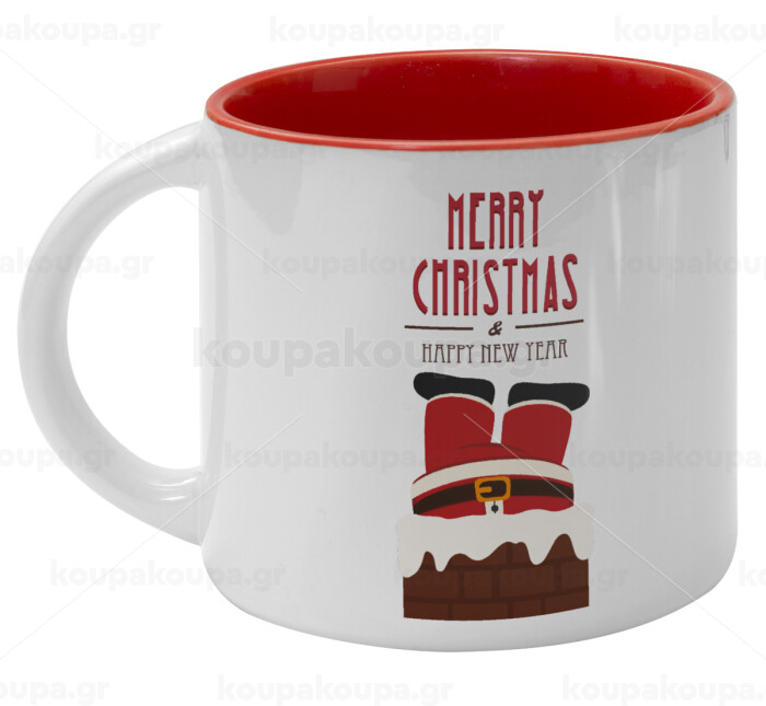 Merry christmas chimney, Κούπα κεραμική 400ml Λευκή/Κόκκινη