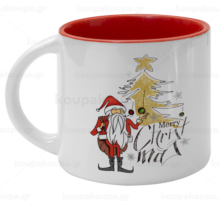 Santa Claus gold, Κούπα κεραμική 400ml Λευκή/Κόκκινη