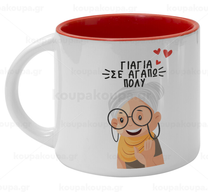 Γιαγιά σε αγαπώ πολύ!, Κούπα κεραμική 400ml Λευκή/Κόκκινη