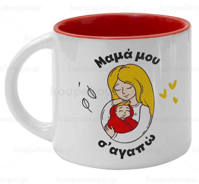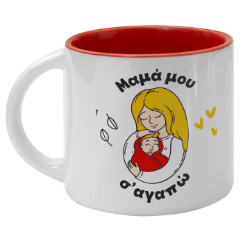 Μανούλα σ'αγαπώ αγκαλιά!, Κούπα κεραμική 400ml Λευκή/Κόκκινη