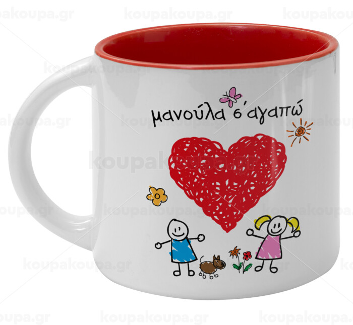 Μανούλα σ'αγαπώ!, Κούπα κεραμική 400ml Λευκή/Κόκκινη