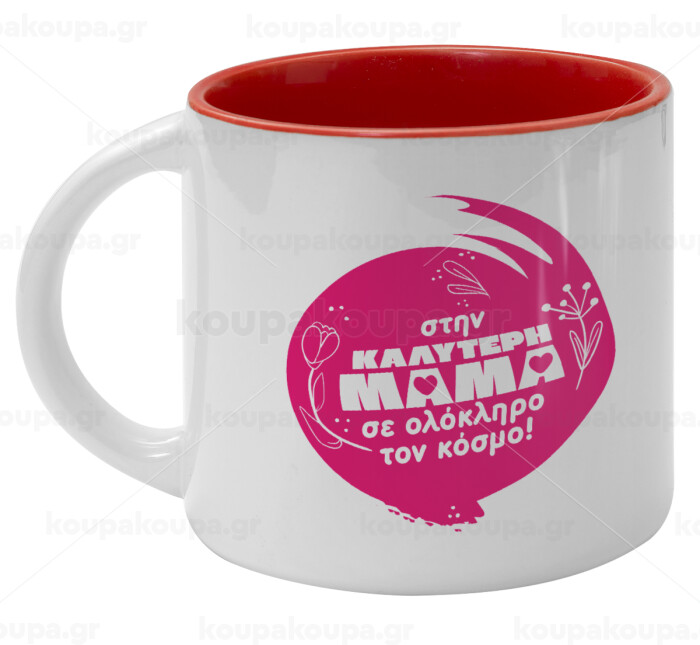 Στην καλύτερη μαμά του κόσμου!, Κούπα κεραμική 400ml Λευκή/Κόκκινη