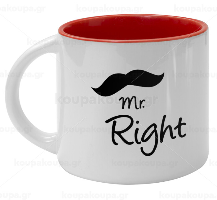 Mr right Mustache, Κούπα κεραμική 400ml Λευκή/Κόκκινη