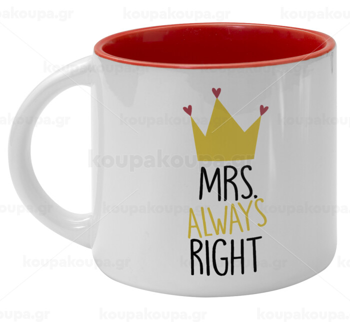 Mrs "Always" right, Κούπα κεραμική 400ml Λευκή/Κόκκινη