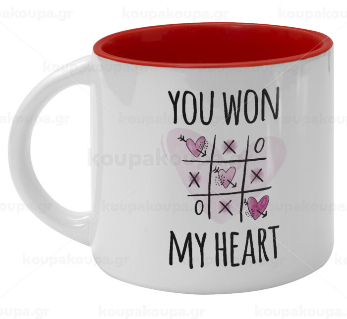 You won my heart, Κούπα κεραμική 400ml Λευκή/Κόκκινη