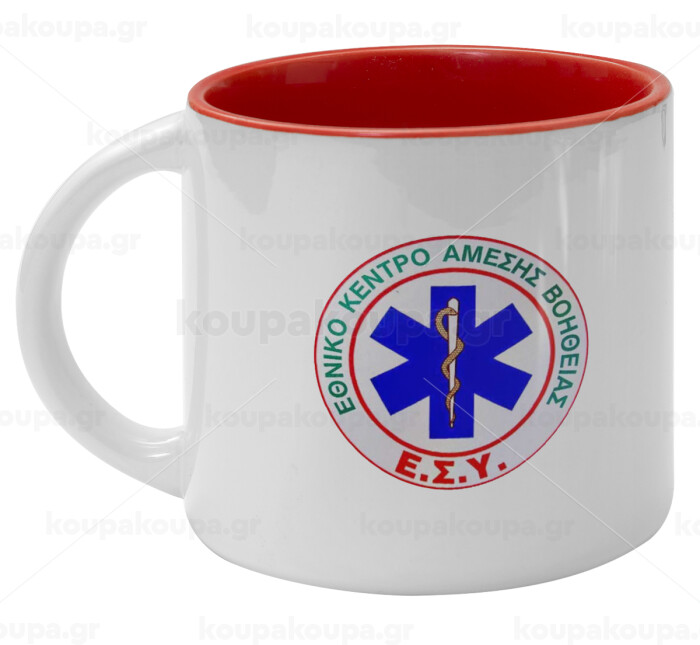 ΕΚΑΒ, Κούπα κεραμική 400ml Λευκή/Κόκκινη
