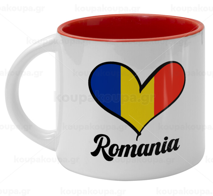 Romania flag, Κούπα κεραμική 400ml Λευκή/Κόκκινη