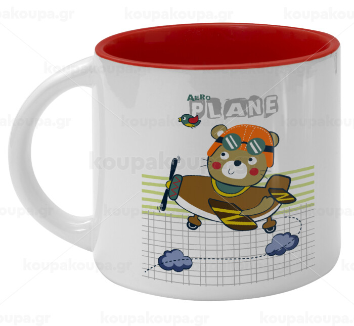 Kids Plane, Κούπα κεραμική 400ml Λευκή/Κόκκινη