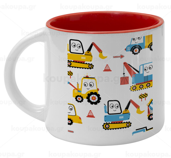 Hand drawing building truck, Κούπα κεραμική 400ml Λευκή/Κόκκινη