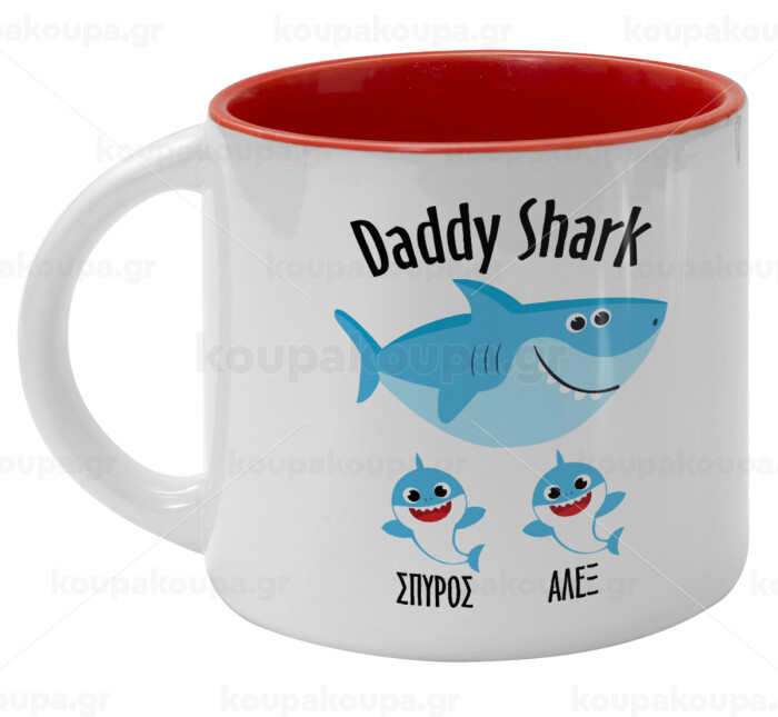 Daddy Shark (με ονόματα παιδικά), Κούπα κεραμική 400ml Λευκή/Κόκκινη