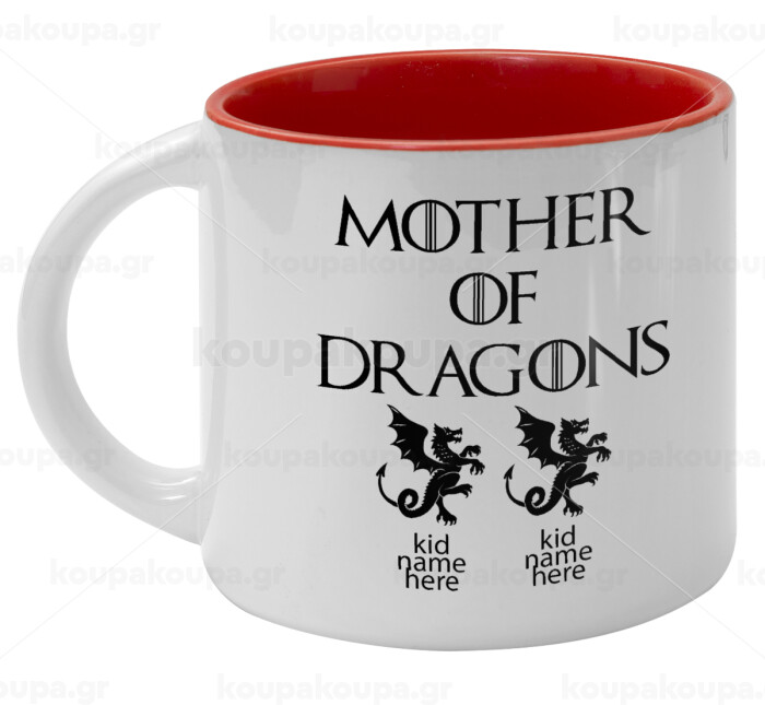 GOT, Mother of Dragons (με ονόματα παιδικά), Κούπα κεραμική 400ml Λευκή/Κόκκινη