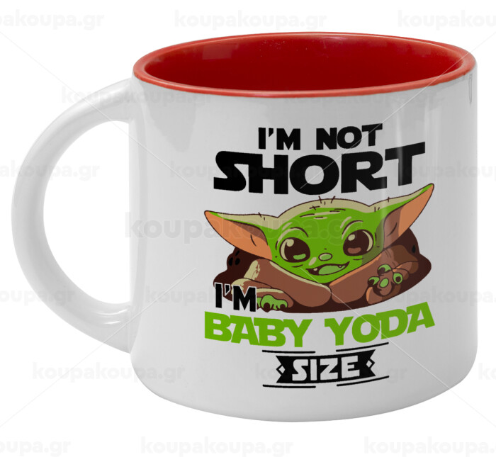 I'm not short, i'm Baby Yoda size, Κούπα κεραμική 400ml Λευκή/Κόκκινη