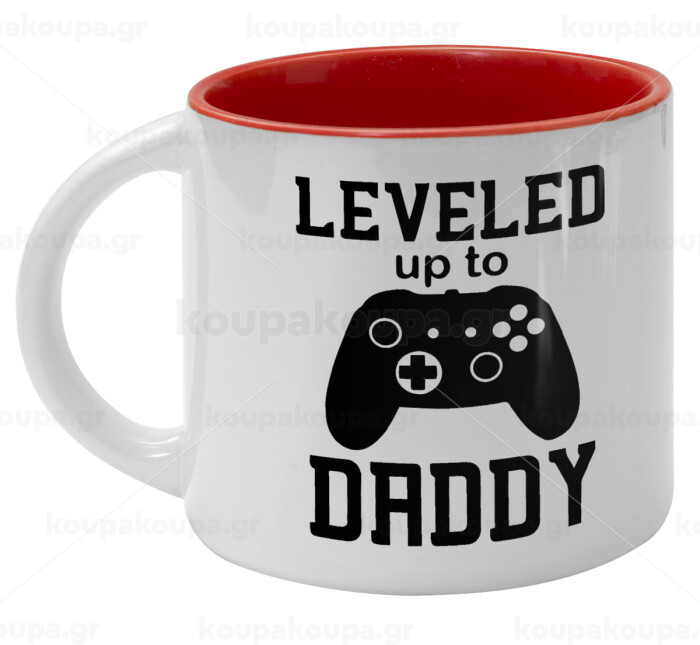 Leveled to Daddy, Κούπα κεραμική 400ml Λευκή/Κόκκινη