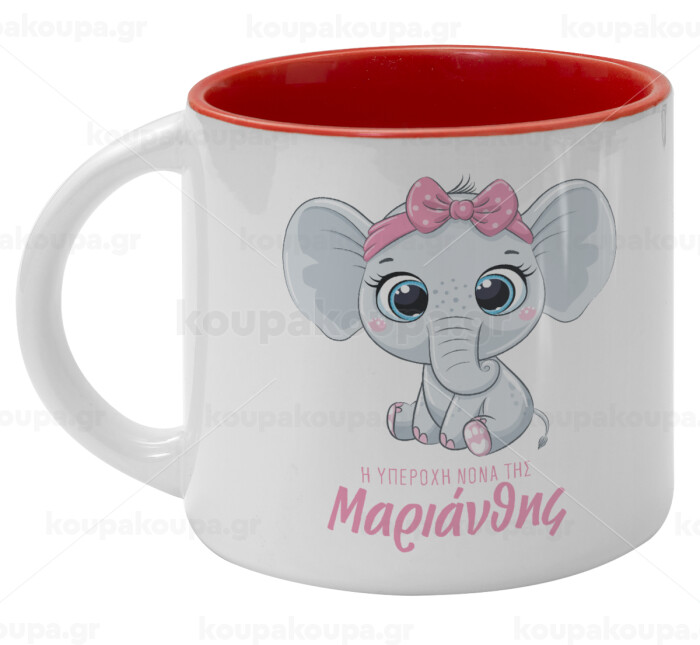 Η νονά μου, ελεφαντάκι ροζ, Κούπα κεραμική 400ml Λευκή/Κόκκινη