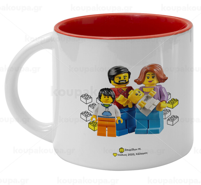 Τύπου Lego family, Κούπα κεραμική 400ml Λευκή/Κόκκινη
